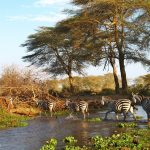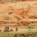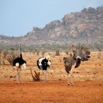 Tsavo National Park has a wide range of wildlife species. It contains about 500 species of birds. Tsavo has huge herds of elephants, lots of giraffes, buffaloes, zebra – common and grevy zebra, antilopes, gazelles, hippo, crocodile, lions, cheetah, leopard, rhinos, yellow baboon, dik-dik, eland, impala, mongoose, fringe-eared oryx, warthog, waterbuck. In Tsavo you will find most of the African wildlife.